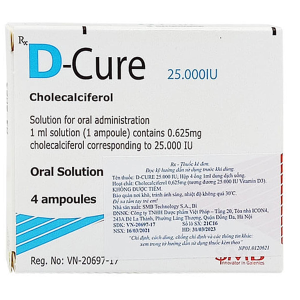 Dung dịch uống D-Cure 25.000IU phòng và trị thiếu vitamin D (4 ống x 1ml)