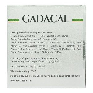 Dung dịch uống Gadacal bổ sung calci, lysin và các vitamin cho cơ thể (20 ống x 10ml)