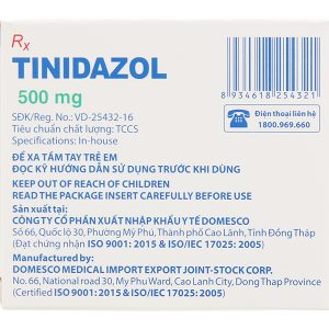 Tinidazol 500 dự phòng nhiễm khuẩn sau phẫu thuật (10 vỉ x 10 viên)