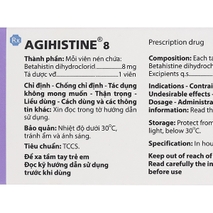 Agihistine 8 trị hội chứng hội chứng Ménière (5 vỉ x 20 viên)