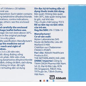 Betaserc 16mg trị rối loạn tiền đình (3 vỉ x 20 viên)