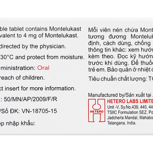 Viên nhai Monte H4 phòng và trị hen suyễn (3 vỉ x 10 viên)