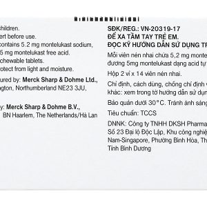 Viên nhai Singulair 5mg dự phòng và trị hen phế quản mạn tính (2 vỉ x 14 viên)