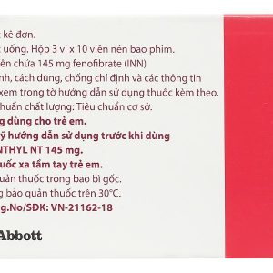 Lipanthyl NT 145mg Abbott trị tăng Cholesterol máu, giảm tiến triển bệnh võng mạc đái tháo đường (3 vỉ x 10 viên)