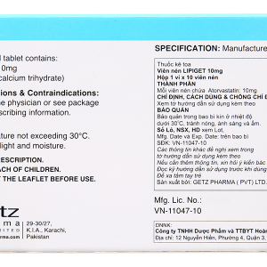 Lipiget 10mg trị rối loạn mỡ máu (1 vỉ x 10 viên)