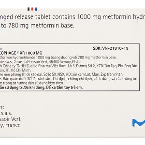 Glucophage XR 1000mg trị đái tháo đường tuýp 2 (3 vỉ x 10 viên)