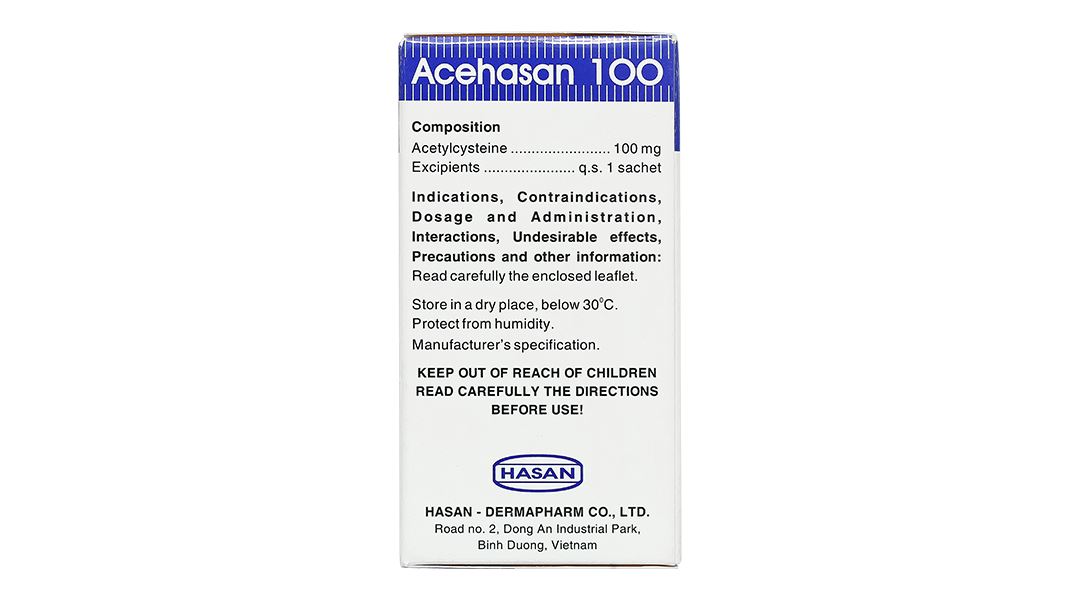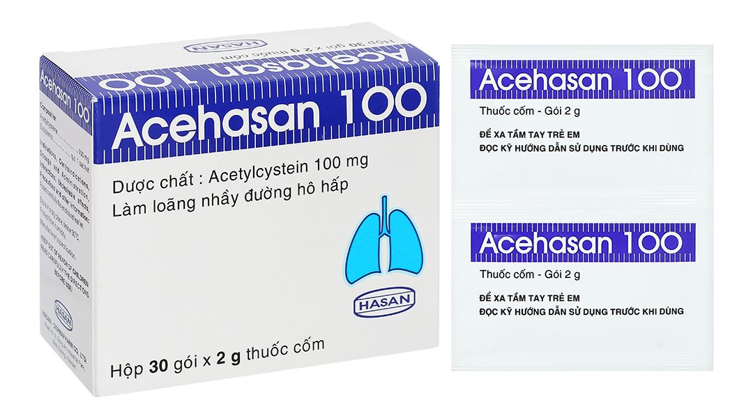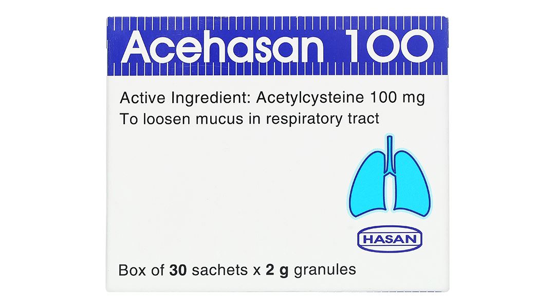 Thuốc cốm Acehasan 100 điều trị rối loạn bài tiết chất nhầy phế quản (30 gói x 2g)