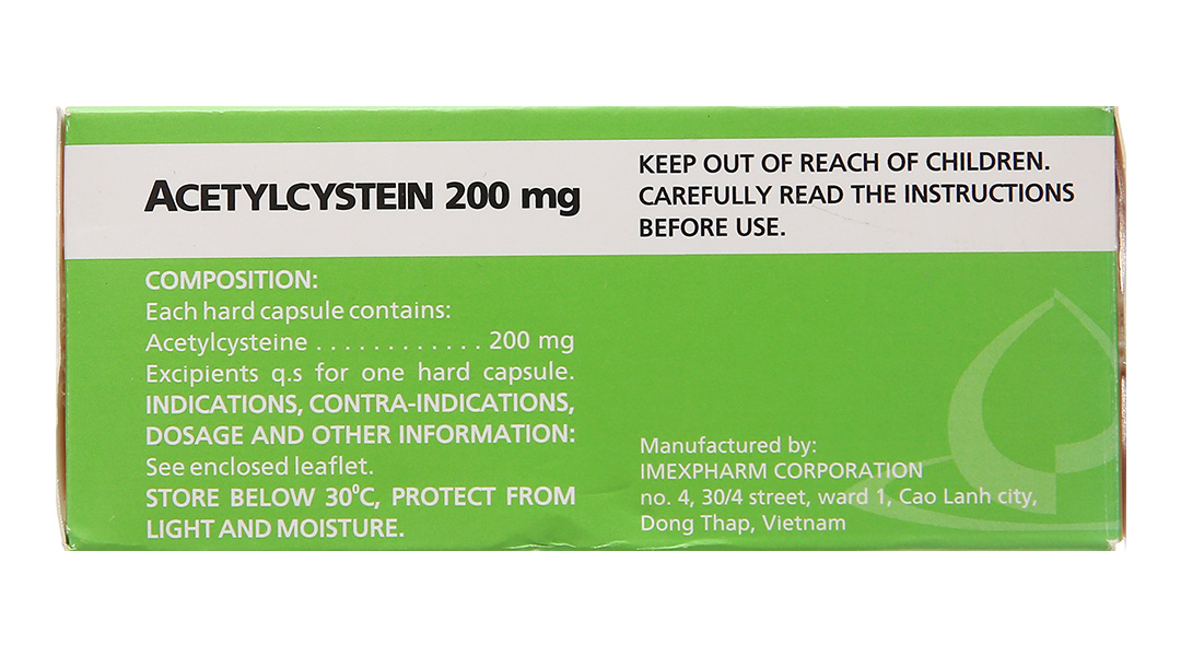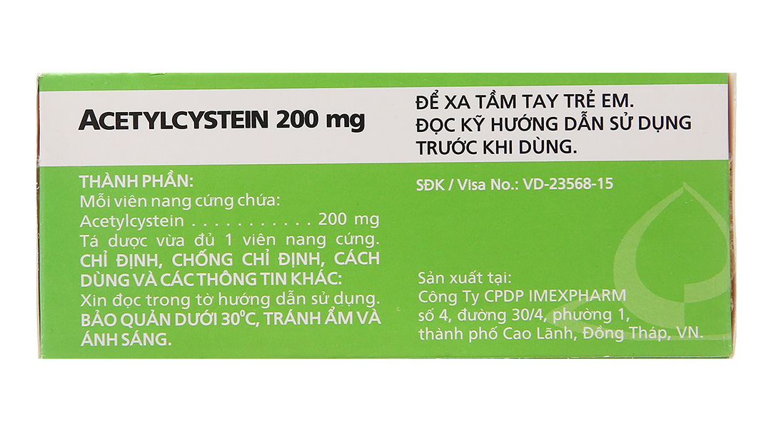 - Dạng bào chế của viên nang cứng Acetylcystein 200 mg không thích hợp sử dụng cho trẻ em từ 2 đến 6 tuổi.