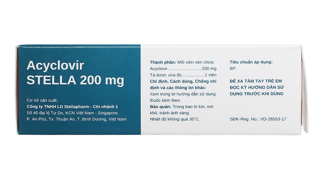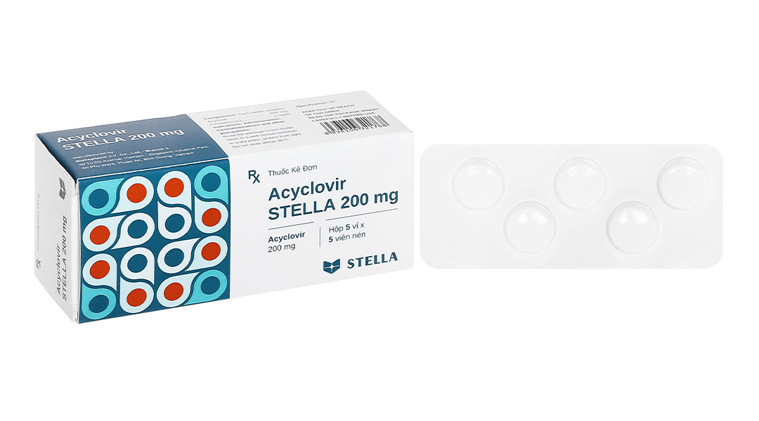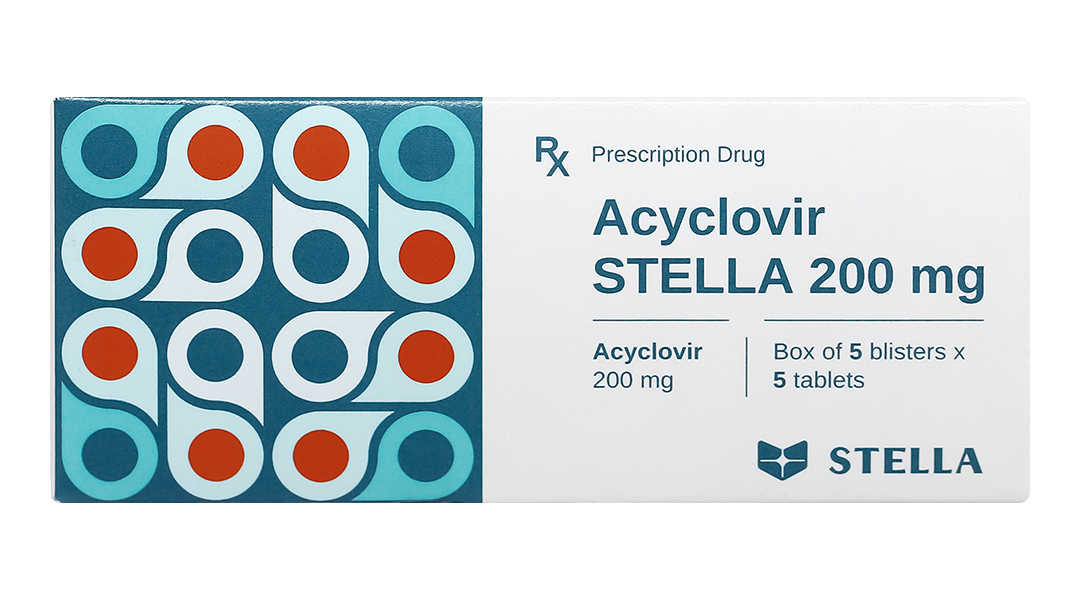 Acyclovir Stella 200mg thuốc kháng virus Herpes simplex (5 vỉ x 5 viên)