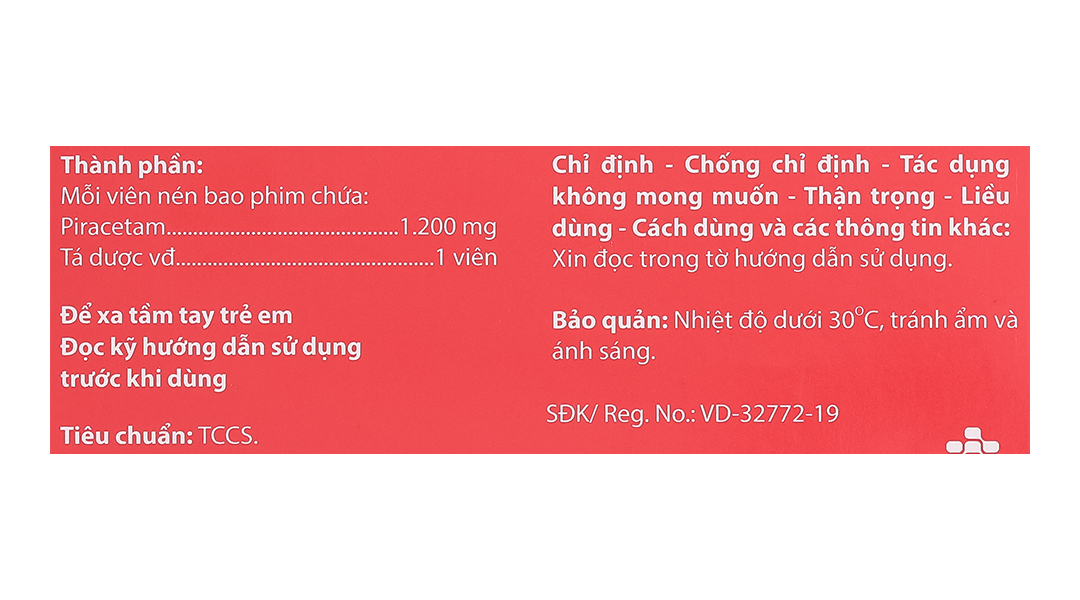 – Thận trọng khi sử dụngVì piracetam được thải qua thận, nên nửa đời của thuốc tăng lên liên quan trực tiếp với mức độ suy thận và độ thanh thải creatinin. Cần rất thận trọng khi dùng (thuốc cho người bệnh bị suy thận. Cần theo dõi chức năng thận ở những người bệnh này và người bệnh cao tuổi (điều chỉnh liều dựa vào hệ số thanh thải của creatinin) Tránh ngừng thuốc đột ngột ở bệnh nhân rung giật cơ do nguy cơ gây co giật. Thận trọng trên bệnh nhân loét dạ dày, có tiền sử đột quỵ do xuất huyết, dùng cùng các thuốc gây chảy máu do tăng nguy cơ gây chảy máu. Thận trọng trong các phẫu thuật lớn do khả năng rối loạn đông máu tiềm tàng. – Thai kỳ và cho con búKhông nên dùng piracetam cho phụ nữ có thai hoặc đang cho con bú. Phụ nữ có khả năng mang thai hoặc đang sử dụng các biện pháp tránh thai hoặc đang mang thai nên tham khảo ý kiến bác sỹ cẩn thận trước khi điều trị với thuốc này. – Khả năng lái xe và vận hành máy mócThuốc hầu như không ảnh hưởng đến khả năng lái xe và vận hành máy móc. Tuy nhiên, cũng có một vài báo cáo về nguy cơ gây chóng mặt, nên bác sỹ có thế tùy từng trường hợp cụ thể mà khuyến cáo hay không khuyến cáo bệnh nhân dùng thuốc khi lái xe và vận hành máy móc. – Tương tác thuốcTương tác của thuốc với các thuốc khác và các loại tương tác khác: Vẫn có thể tiếp tục phương pháp điều trị kinh điển đối với nghiện rượu (các vitamin và các thuốc an thần) trong trường hợp người bệnh bị thiếu vitamin hoặc kích động mạnh. Khi dùng đồng thời với tinh chất tuyến giáp: Đã có một trường hợp bị lú lẫn, bị kích thích và rối loạn giấc ngủ. Ở một người bệnh thời gian prothrombin đã được ổn định bằng warfarin lại tăng lên khi dùng piracetam. Tương kỵ của thuốc: Do không có các nghiên cứu về tính tương kỵ của thuốc, không trộn lẫn thuốc này với các thuốc khác. |