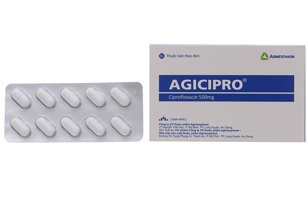 Agicipro 500mg dự phòng và trị nhiễm khuẩn nặng (10 vỉ x 10 viên)