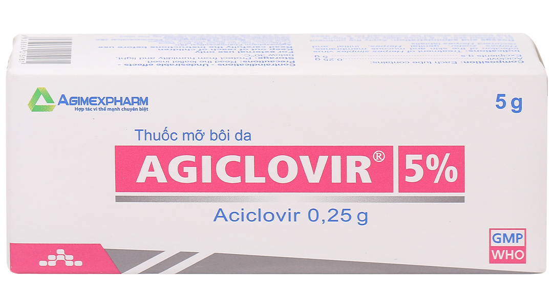 Agiclovir 5% tuýp 5g là thuốc mỡ bôi ngoài da có tác dụng tại chỗ, sử dụng trực tiếp thuốc lên vùng da/niêm mạc cần điều trị.