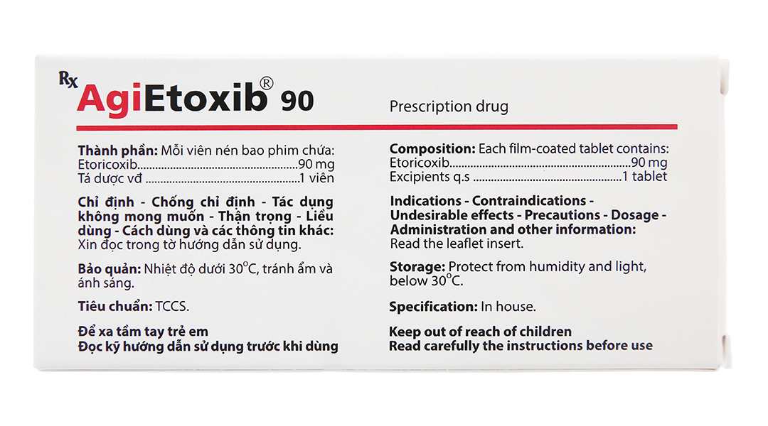 AgiEtoxib 90mg giảm đau, kháng viêm xương khớp (3 vỉ x 10 viên)
