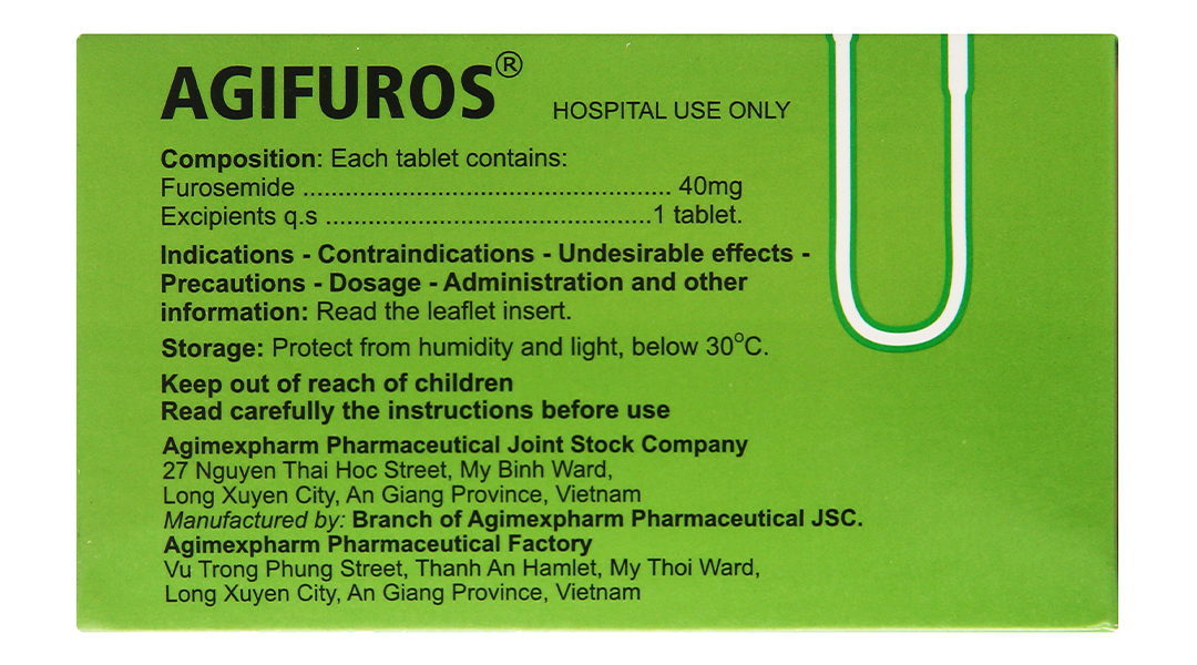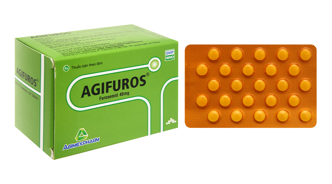 Agifuros 40mg trị tăng huyết áp, tăng canxi huyết, trị phù (10 vỉ x 25 viên)