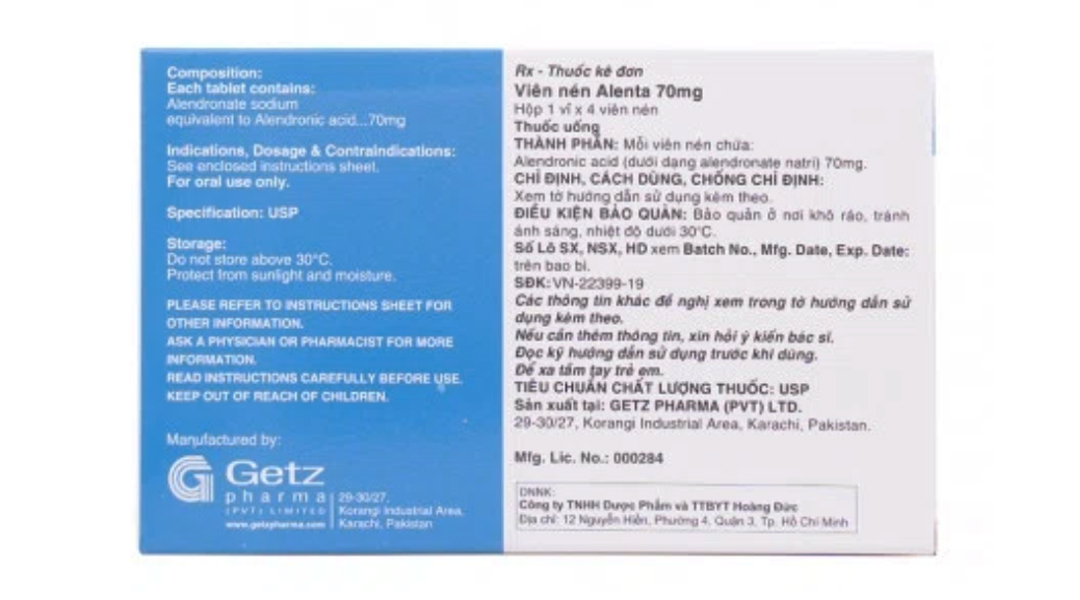 Hoạt chất: Natri Alendronate tương đương 70mg Alendronic acid.