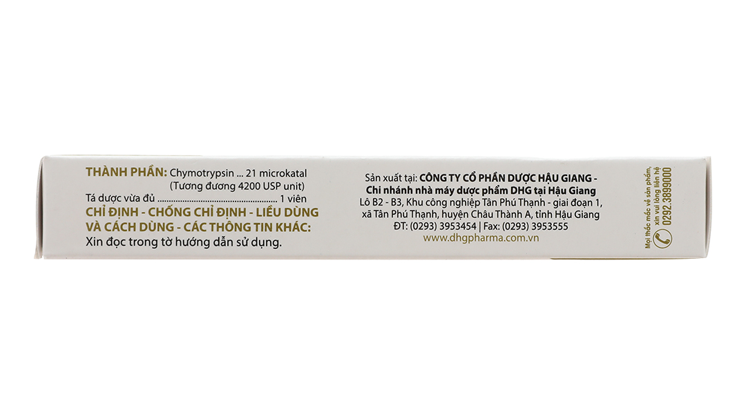 Hoạt chất: Chymotrypsin 21 microkatal (Tương đương 4200 USP unit).