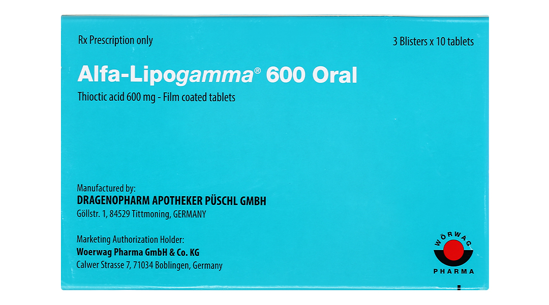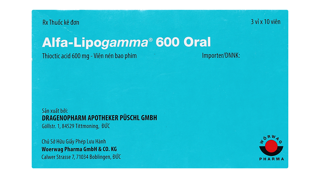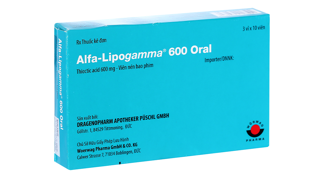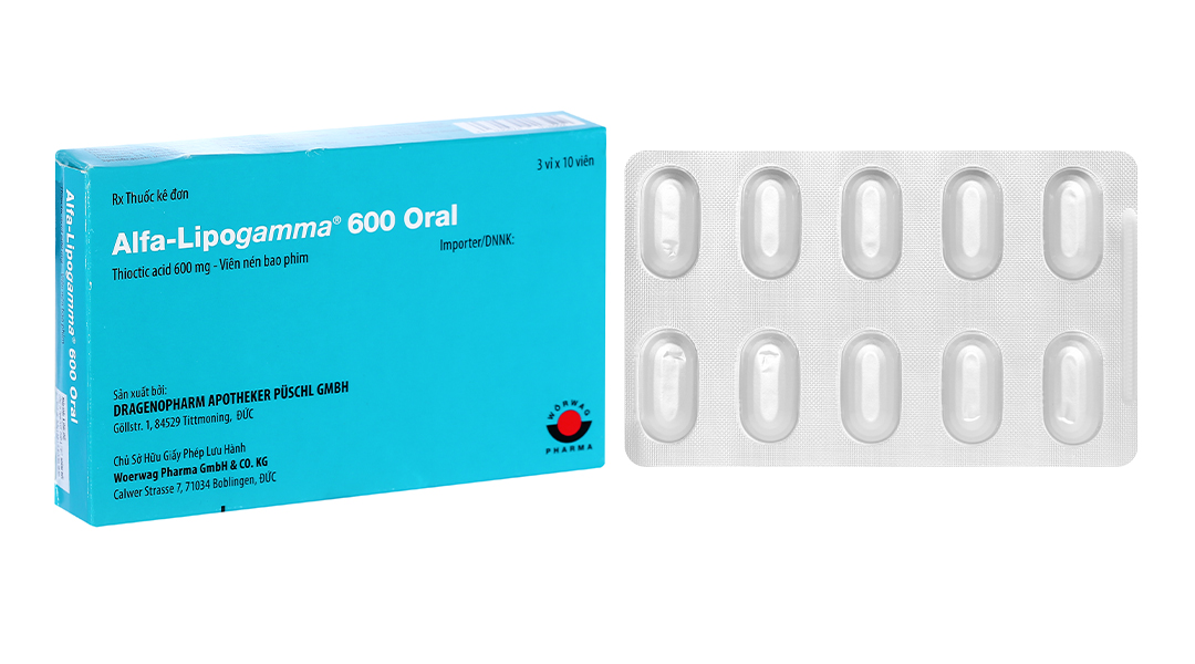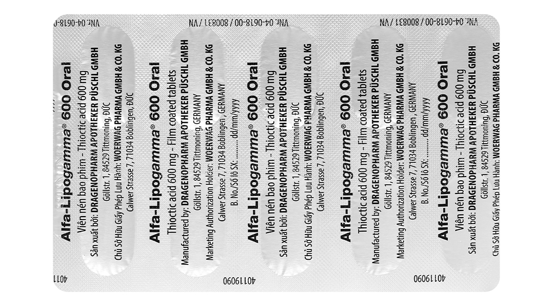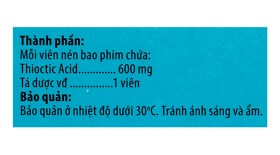 Thành phần hoạt chất: acid thioctic (acid alpha-lipoic) 600 mg