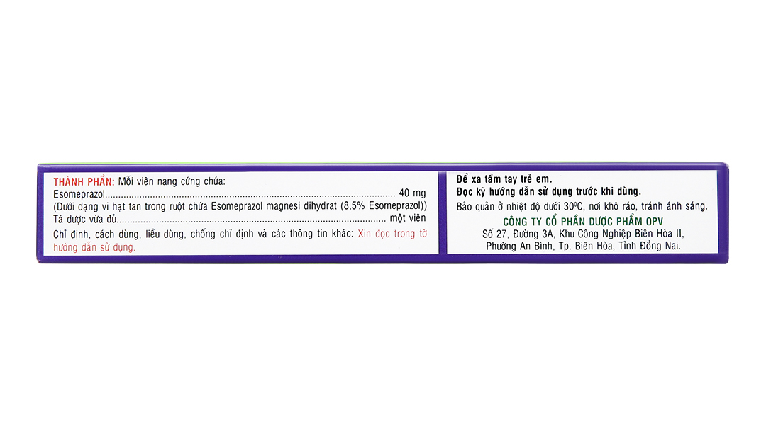 Hoạt chất: Esomeprazol 40mg (dưới dạng vi hạt tan trong ruột chứa Esomeprazol magnesi dihydrat).