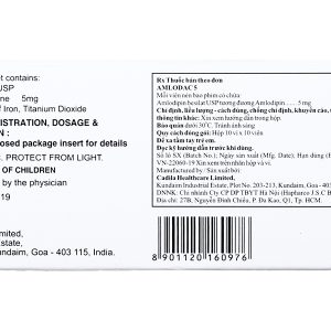 – Thành phần hoạt chất: Amlodipin 5mg (dưới dạng amlodipin besylat)