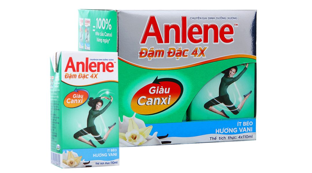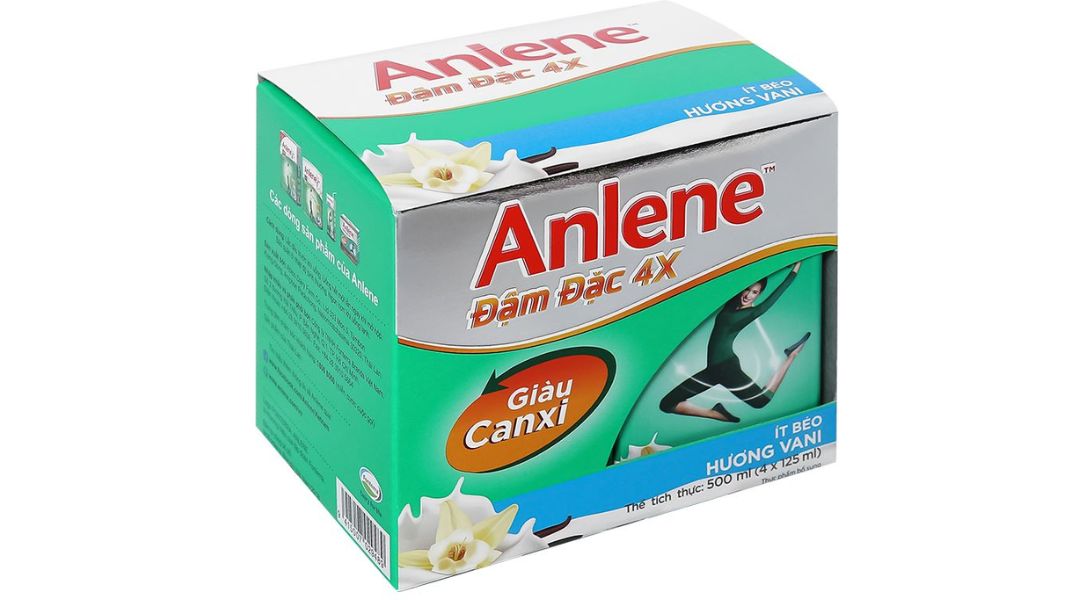 Anlene đậm đặc 4X là một sản phẩm sữa bột dành cho người trưởng thành với công thức sữa được cân đối, tỷ lệ Canxi cao phù hợp. Bên cạnh việc bổ sung các thực phẩm giàu Canxi, Anlene 4x còn có hệ dưỡng chất tối ưu bao gồm Protein, Vitamin D3, Kẽm, Magiê,… Theo khuyến cáo dinh dưỡng, với 2 hộp sữa bột pha sẵn Alene đậm đặc 4x mỗi ngày sẽ cung cấp đầy đủ nhu cầu Canxi cơ bản.