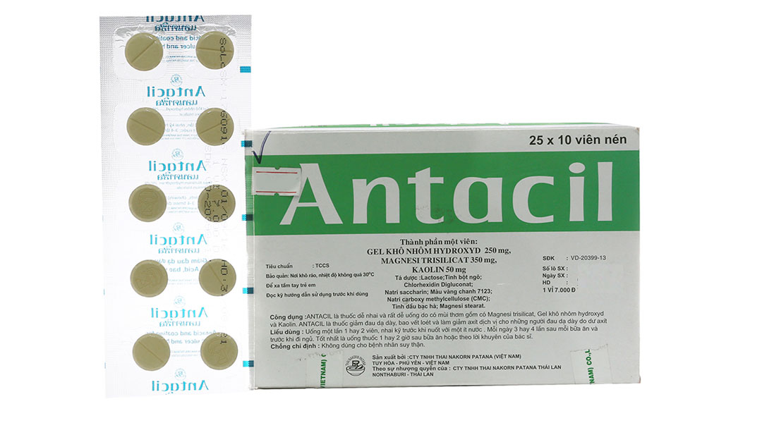 Antacil giảm ợ chua, trị loét dạ dày, tá tràng (25 vỉ x 10 viên)