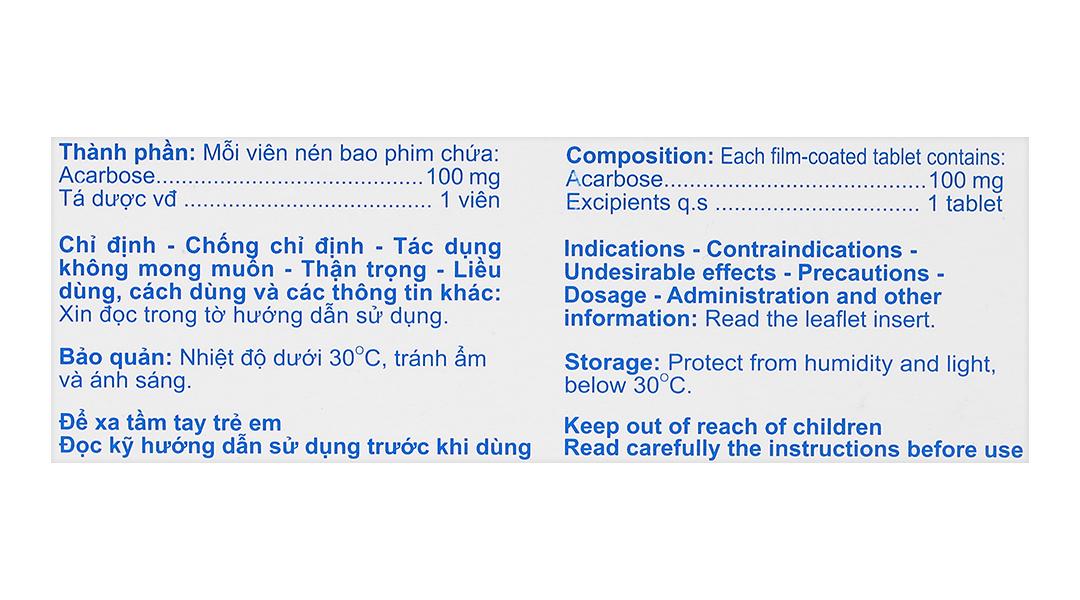 - Trái với các thuốc chống đái tháo đường sulfonylurê, acarbose không làm tăng tiết insulin.