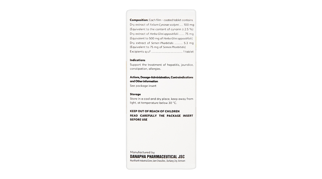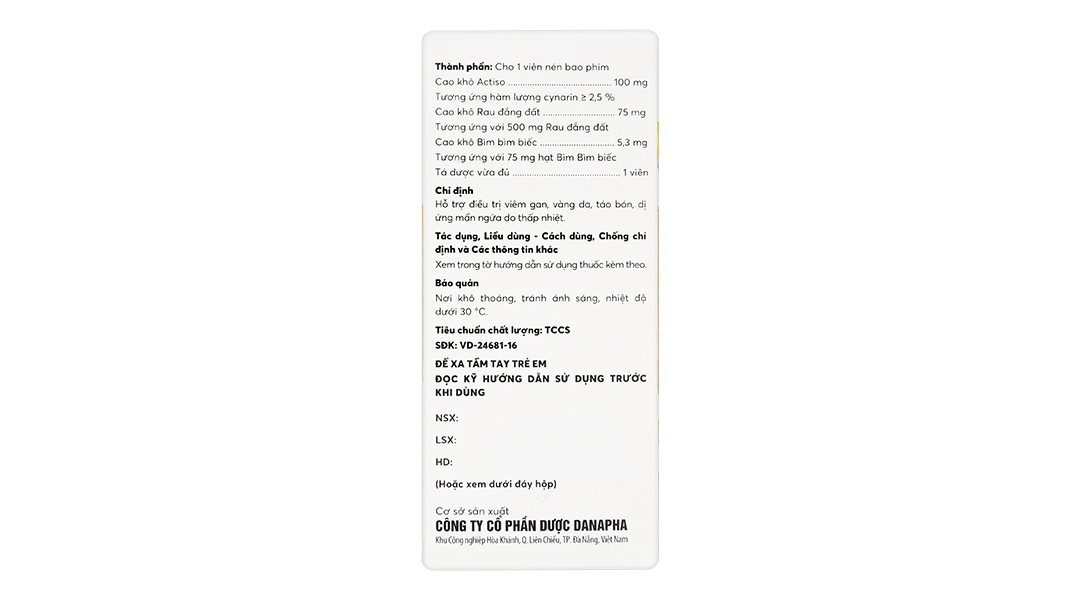 - Cao khô Actiso (Folium Cynarae scolymi): 100mg.