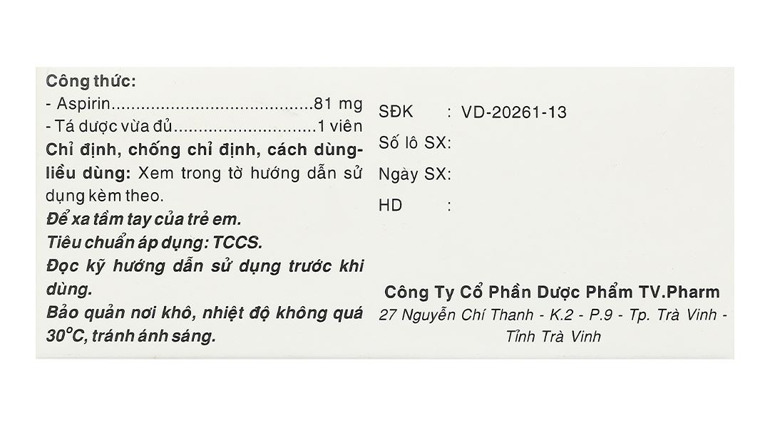 – 81 – 325 mg/ngày. Dùng hàng ngày hoặc cách ngày.