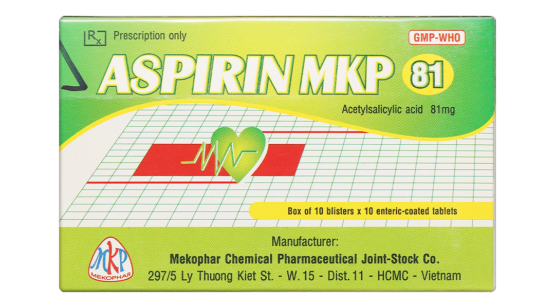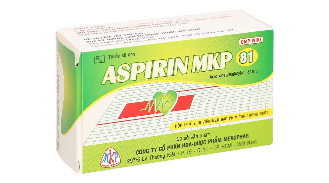 Thuốc Aspirin MKP 81 được chỉ định dự phòng thứ phát bệnh tim mạch hoặc mạch máu não do huyết khối và sau khi phẫu thuật bắc cầu động mạch vành.