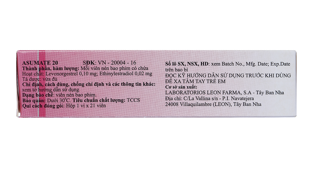 Khi quên thuốc: ASUMATE 20 chứa hàm lượng hormone rất thấp, do đó nếu có quên thuốc thì cũng ít ảnh hưởng đến hiệu quả tránh thai.