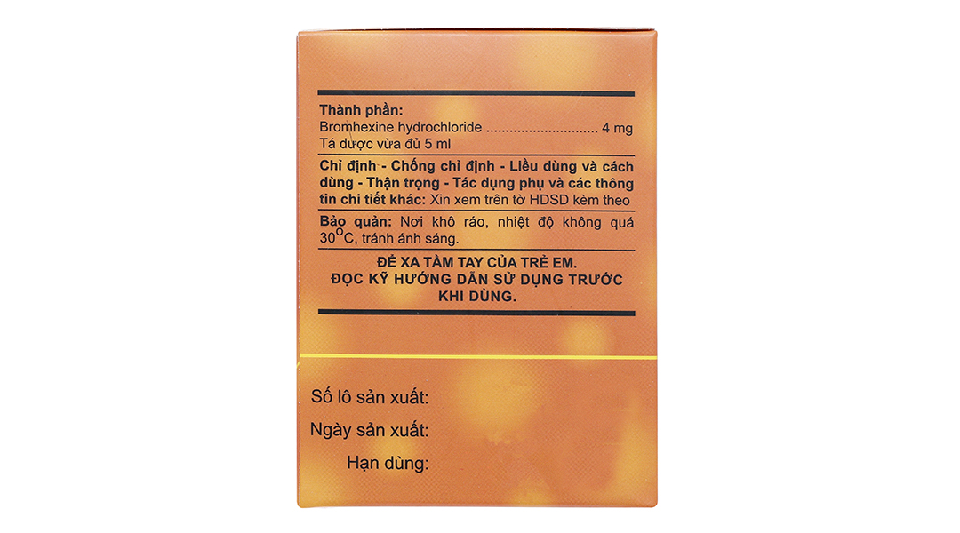 Hoạt chất: Bromhexine hydrochloride 4 mg.
