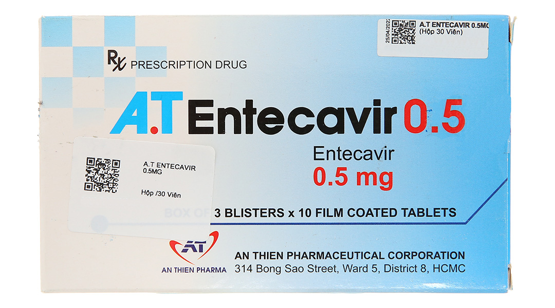 A.T Entecavir 0.5 điều trị viêm gan B mãn tính (3 vỉ x 10 viên)