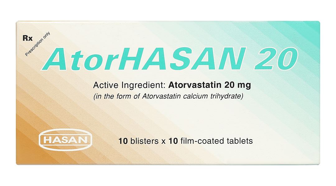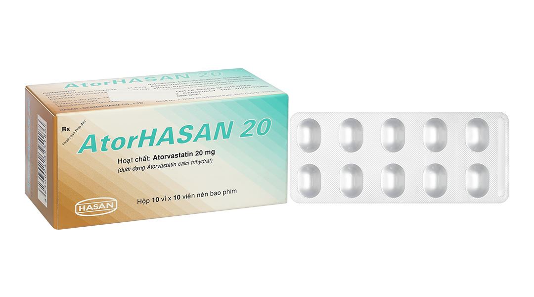 AtorHasan 20 điều trị tăng lipid huyết và dự phòng biến cố tim mạch (10 vỉ x 10 viên)