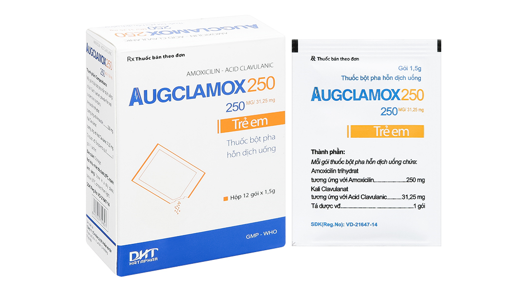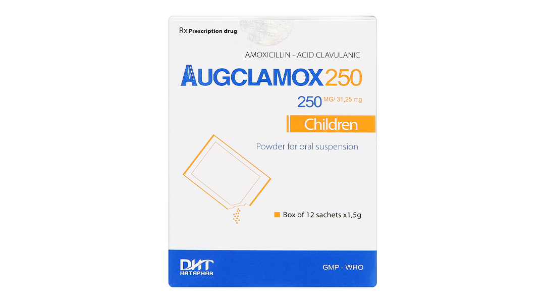 Thuốc bột pha hỗn dịch uống Augclamox 250 trị nhiễm khuẩn (12 gói x 1.5g)