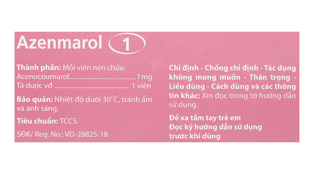 Mỗi viên AZENMAROL 1 chứa 1 mg Acenocoumarol.