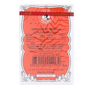Lọ 20g: Menthol 1.6g, Tinh dầu Đinh hương 0.4g, Tinh dầu Bạc hà 3.18g, Eucalyptol 0.98g, Long não 2.18g, Methyl Salicylat 4.0g, Tinh dầu Quế 0.3g, Tá dược vừa đủ 20g.