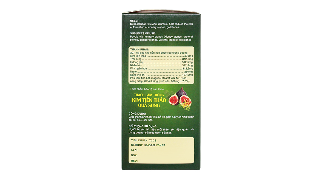 Thạch Lâm Thông Kim Tiền Thảo Quả Sung giúp thanh nhiệt, lợi tiểu, hỗ trợ giảm nguy cơ hình thành sỏi tiết niệu, sỏi mật.