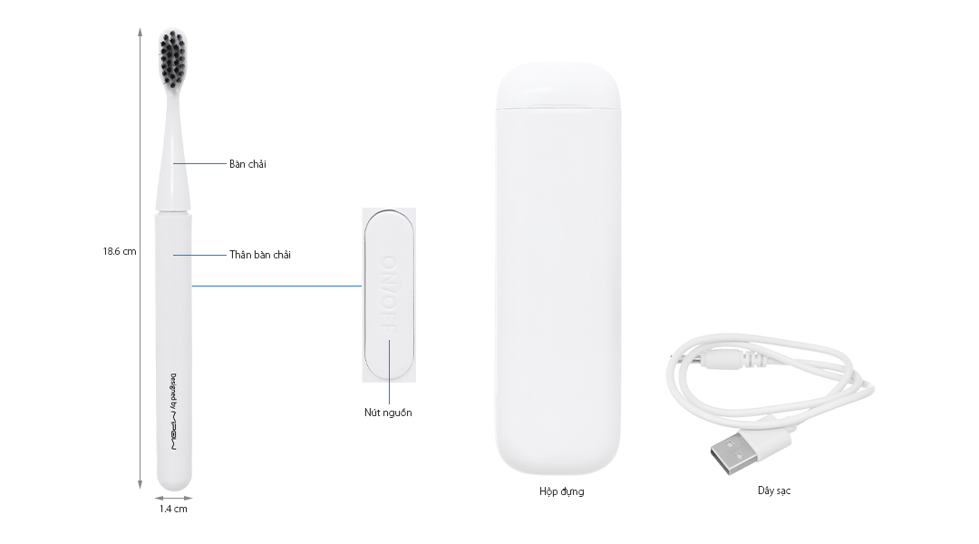– Bộ sản phẩm bao gồm: 1 hộp đựng trong đó có 1 thân bàn chải điện, 1 đầu chải, 1 bộ sạc.