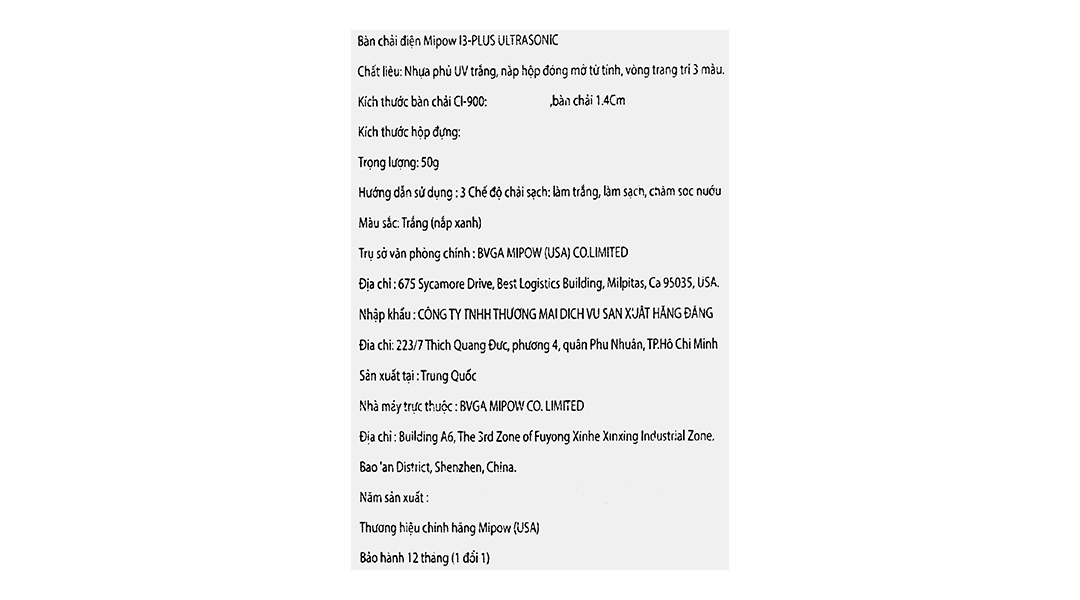 + Kích thước bàn chải CI-900: 18.6 x 1.4cm, Mỏng nhất thế giới chỉ 1.4cm.