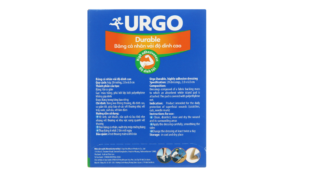 Băng cá nhân vải Urgo Durable hộp 20 miếng giúp bảo vệ các vết thương nhỏ, vết trầy xước, rách da, vết kim đâm.
