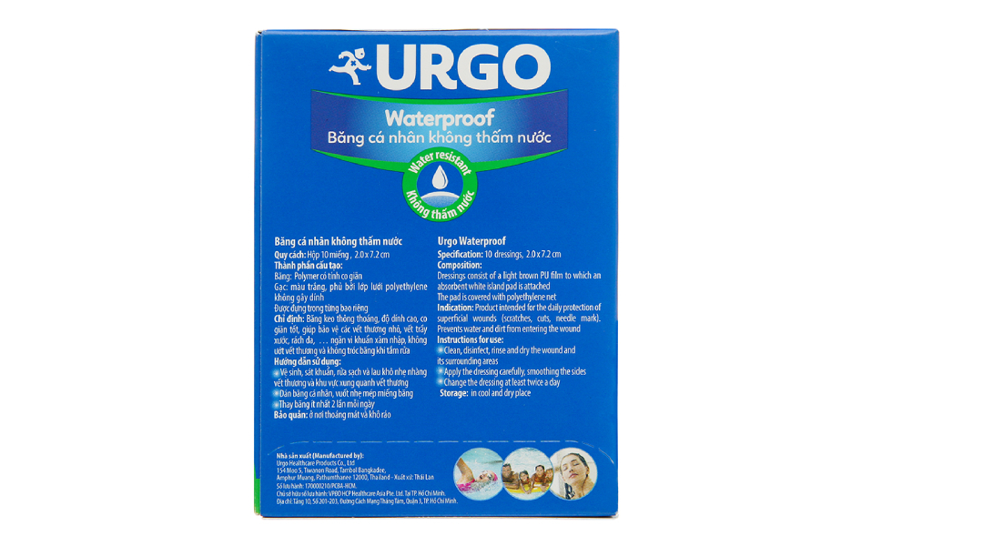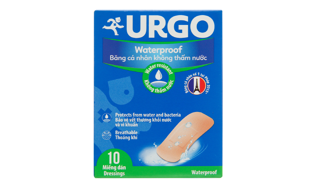 Băng cá nhân không thấm nước Urgo Waterproof (2 x 7.2cm) hộp 10 miếng