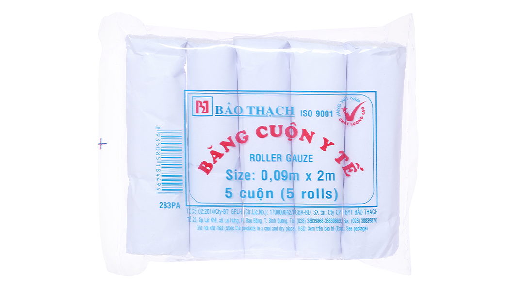 Băng cuộn y tế Bảo Thạch được làm từ 100% sợi cotton, gạc trắng và sạch.