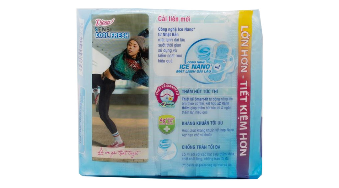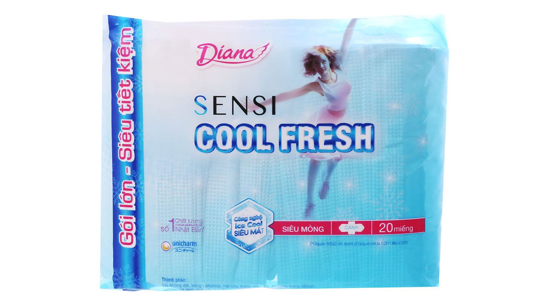 - Băng vệ sinh ban ngày Diana Sensi viền êm với độ dày phù hợp và vượt trội cho bạn gái tự tin ngay cả trong ngày nhiều.