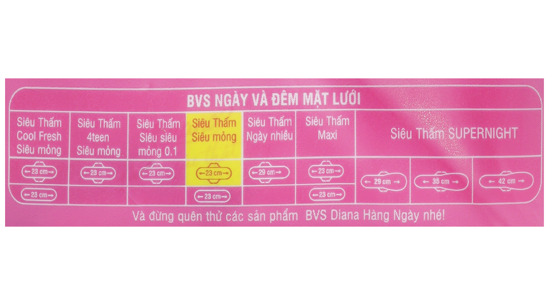 - Loại sản phẩm: Băng vệ sinh ban ngày, có cánh, siêu mỏng.
