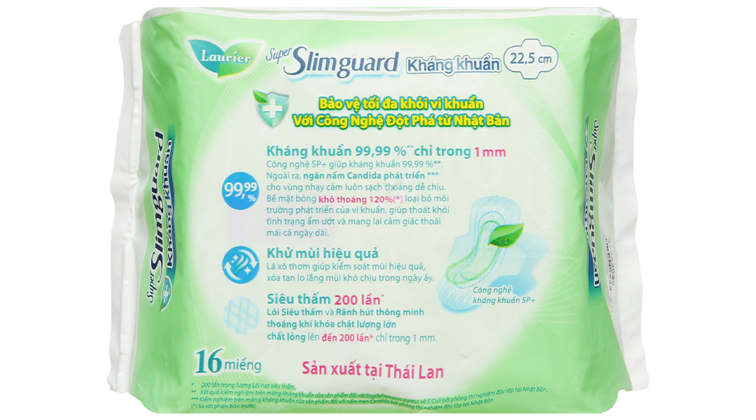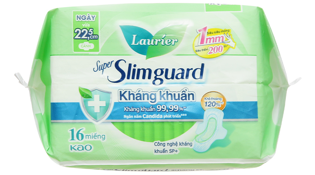Băng vệ sinh Laurier Super Slimguard kháng khuẩn siêu siêu mỏng cánh gói 16 miếng