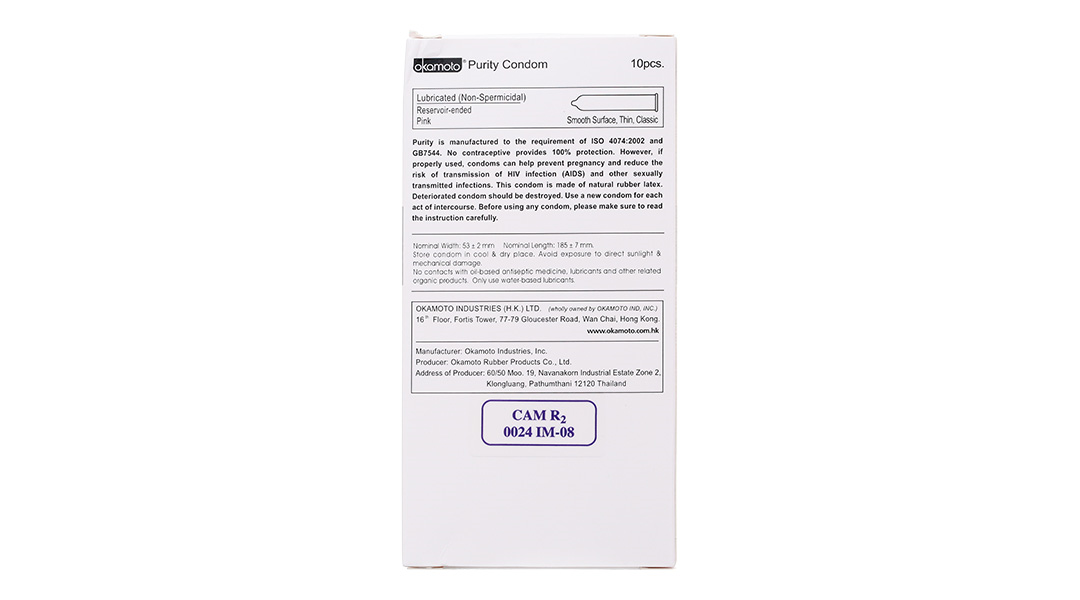 Bao cao su Okamoto Skinless Skin Purity 53mm được làm từ mủ cao su thiên nhiên cao cấp, đáp ứng các yêu cầu và điều kiện sản xuất nghiêm ngặt, đảm bảo an toàn tối đa cho người sử dụng.
