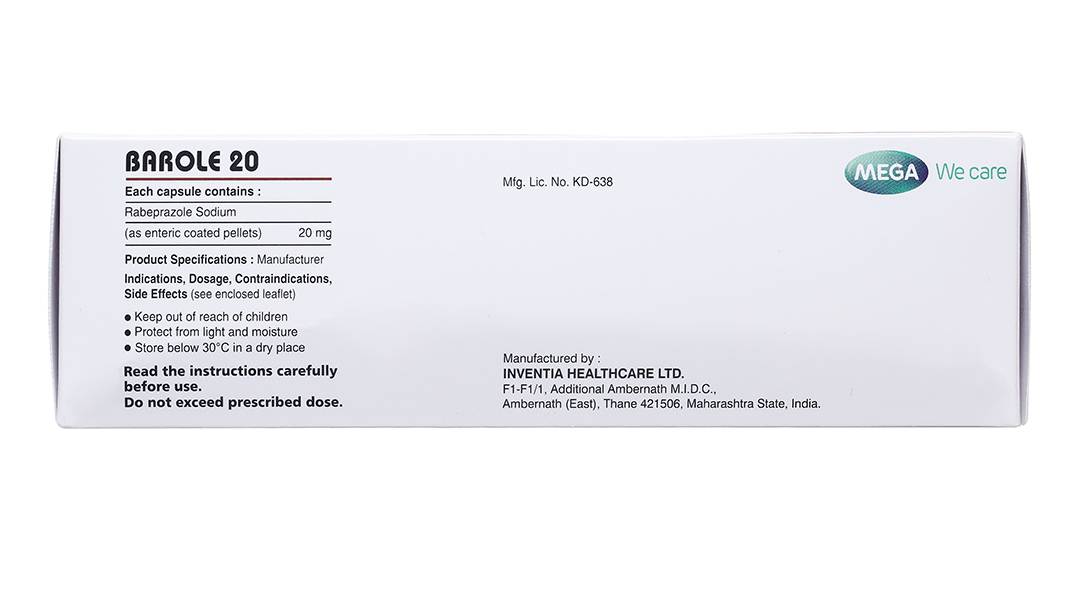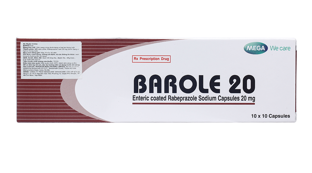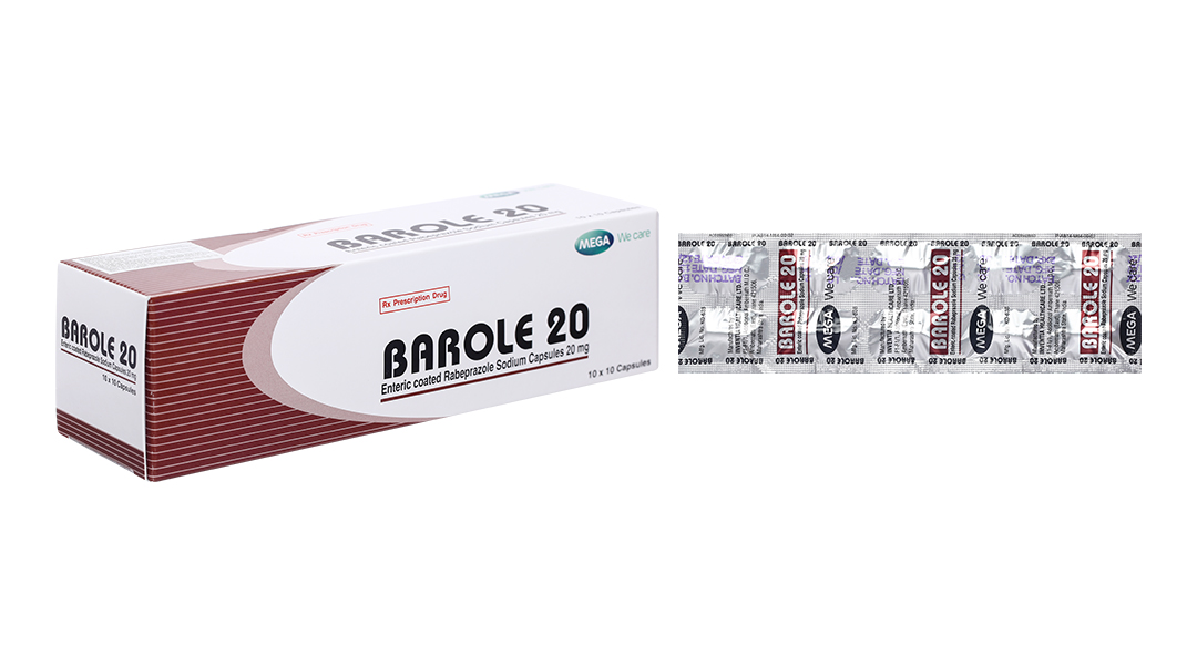 Barole 20 trị viêm loét do trào ngược dạ dày, thực quản (10 vỉ x 10 viên)