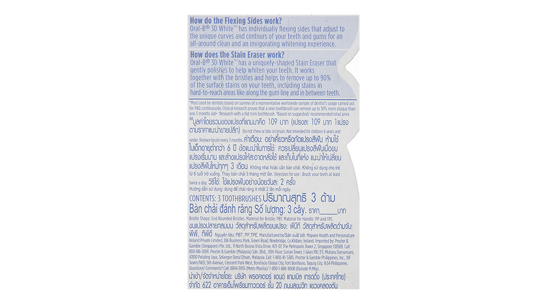 Bàn chải đánh răng Oral B là giải pháp chăm sóc răng miệng toàn diện giúp vệ sinh răng, nướu và lưỡi. Lông bàn chải được làm từ sợi chỉ tơ nha khoa siêu mảnh có khả năng len lỏi vào từng kẽ răng, loại bỏ thức ăn thừa và mảng bám.