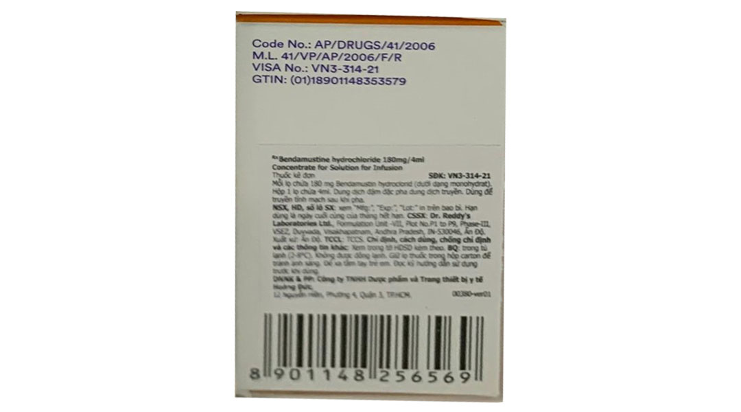 Dung dịch Bendamustine Hydrochloride 180mg/4ml chỉ định điều trị ung thư chai 4ml