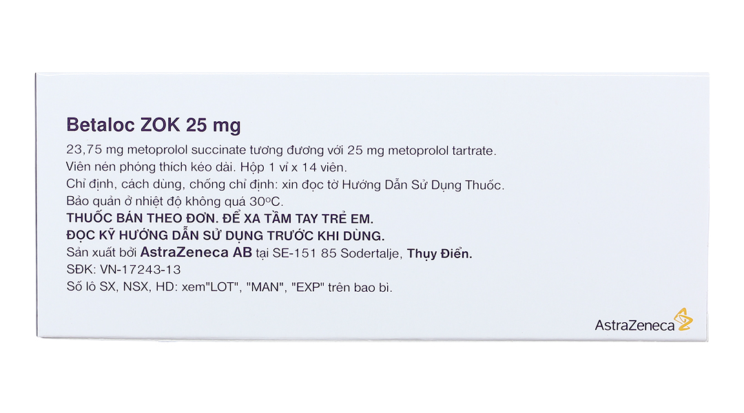 - Mỗi viên nén Betaloc ZOK chứa metoprolol succinate: 23,75mg tương đương với 25mg metoprolol tartrate.